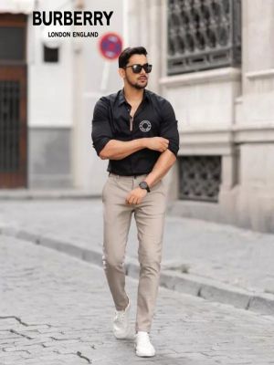 SALE BURBERR Y LOGO PRINT BLACK PREMIUM SHIRT WITH ORIGINAL BOX AND CARRY BAG 354